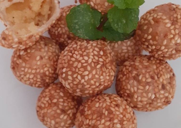 - Ambil adonan pipihkan kemudian taro isian yg sudah dbuat diatasnya lalu nulatkan kembali lakukan hingga adonan habis. Setelah itu masukkan k dalam mangkok yg sudah berisi wijen tekan2 sebentar lakukan hingga seluruh adonan dtenpeli wijen.